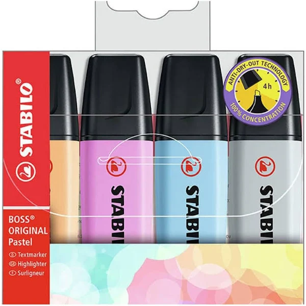 ¡El Resaltador Stabilo Boss Pastel x 4 Estuche es ideal para quienes buscan resaltar lo importante con estilo! 🌈✨