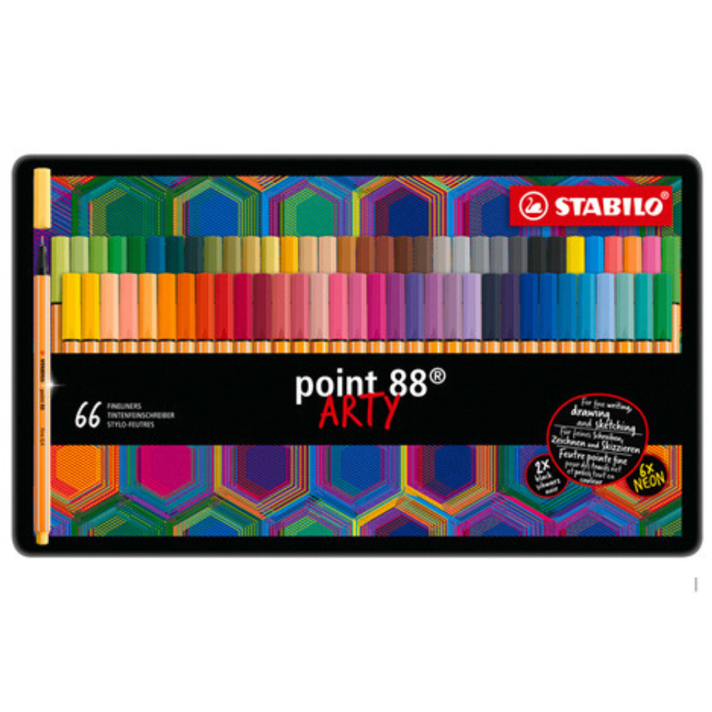 Este set incluye 66 marcadores Point 88 de la reconocida marca Stabilo.