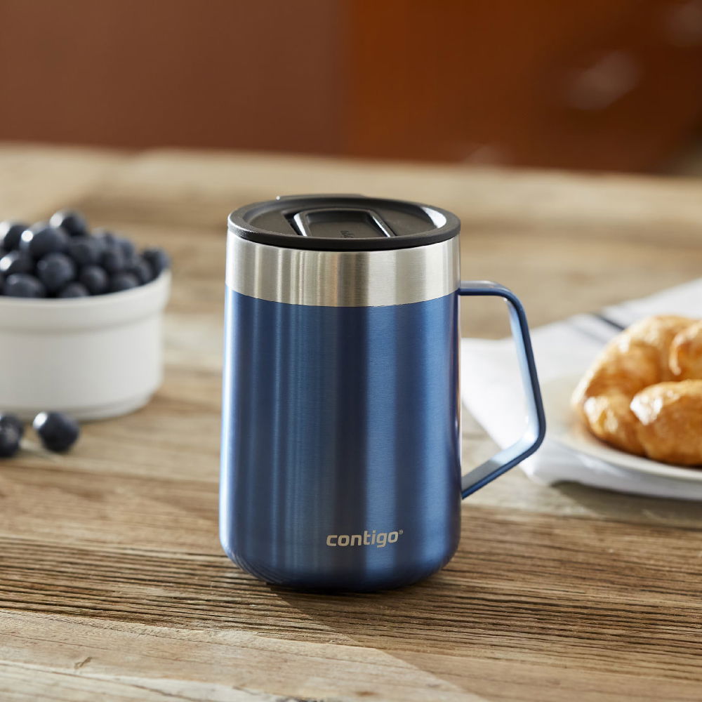La Streeterville Desk Mug de 414 ml un diseño elegante con una cómoda asa y una tapa segura a prueba de salpicaduras.