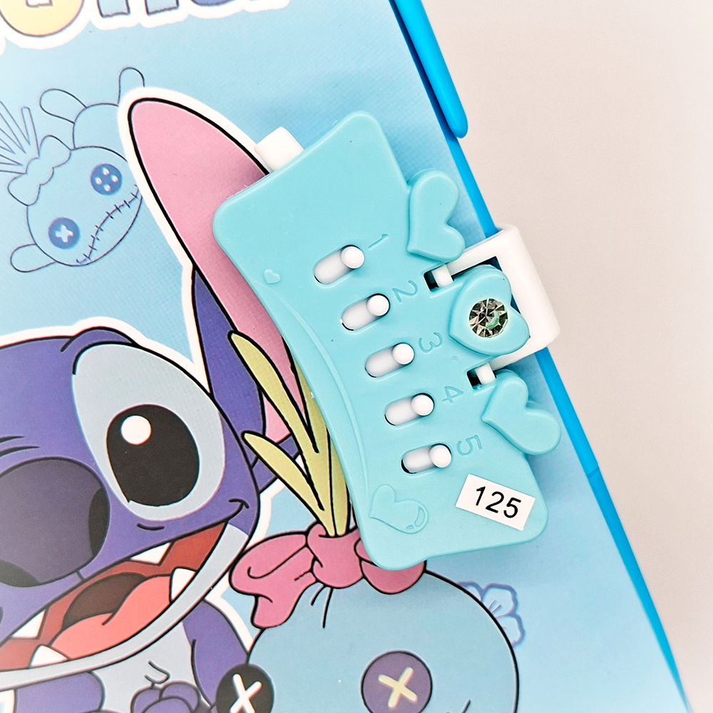 ¡Amor por Stitch en cada página! 💙 Este cuaderno tamaño A5 viene con cierre de combinación para que guardes tus secretos bien protegidos. Perfecto para llevar al cole, a la facu o para escribir lo que quieras con estilo y seguridad.