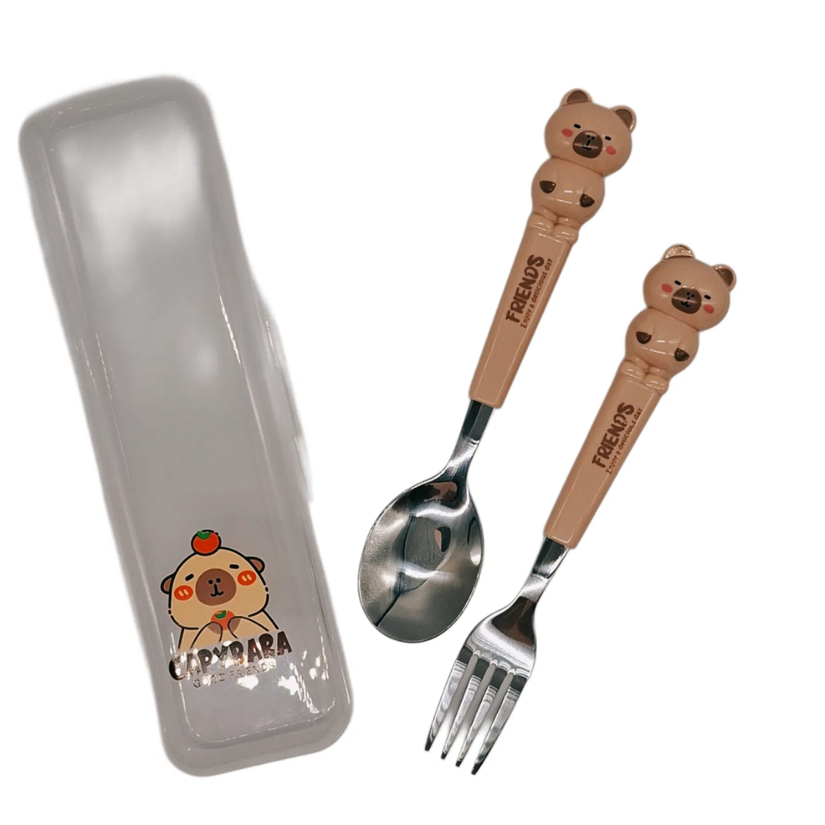 🥄✨ CUBIERTOS DE CAPYBARA – GOOD FRIENDS ✨🍴¡Sumale ternura a cada comida! Este set de cubiertos con diseño de Capybara Good Friends 🐹💖 es furor entre chicos y grandes. Súper livianos, resistentes y con un diseño adorable que enamora 😍.
