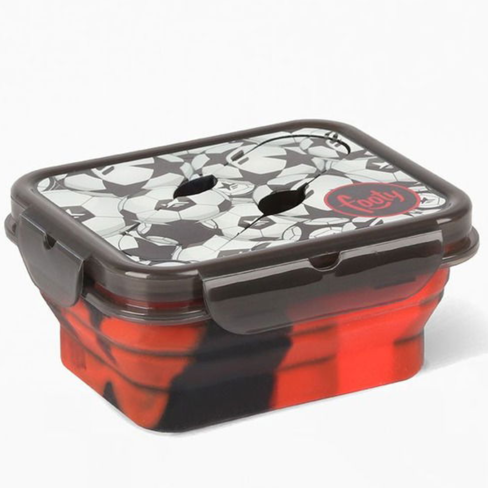 🟣 LUNCHERA PLEGABLE DE SILICONA CON TAPA RÍGIDA - FOOTY 🟣