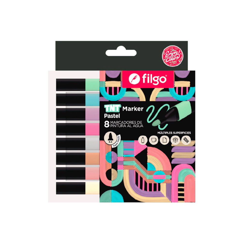 Pack de 8 marcadores PASTEL de pintura al agua TNT Filgo.
