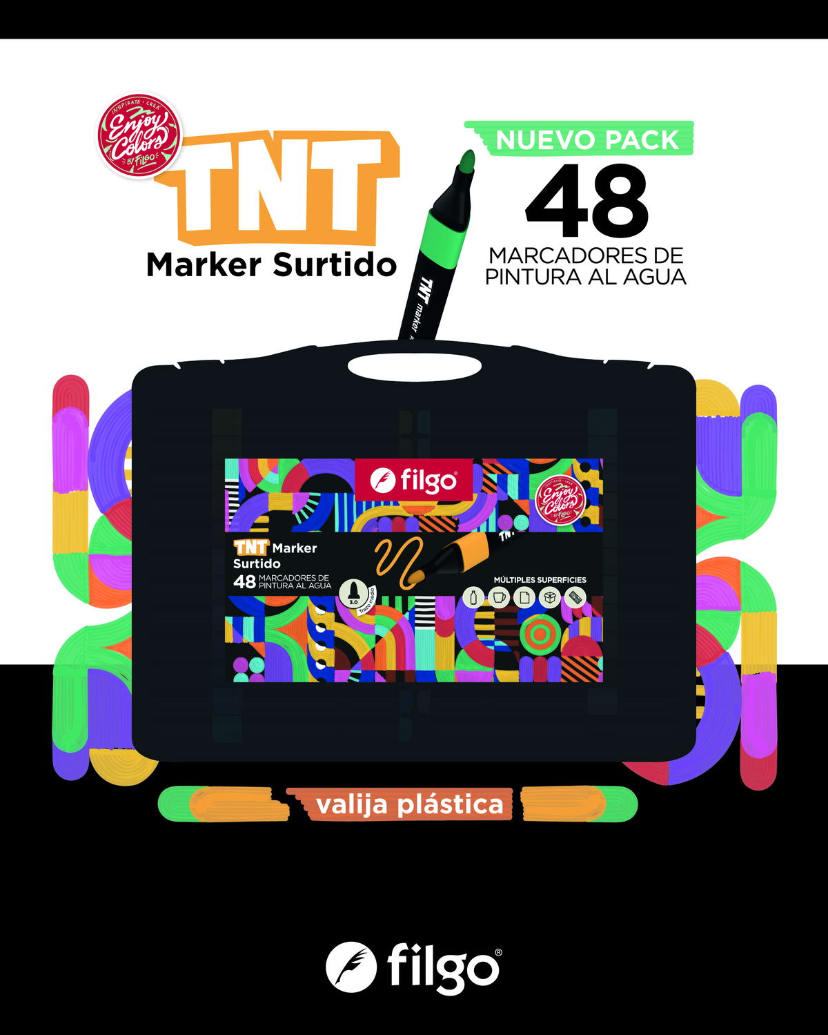 Descubre el potencial creativo del Marcador De Pintura Al Agua Filgo TNT - Valija x48.