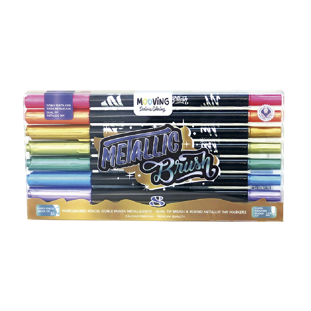 Marcadores PINCEL DOBLE PUNTA METALIZADOS x8 de Mooving.