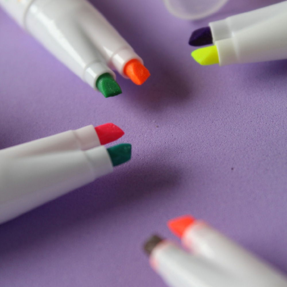 - Resaltadores con 2 puntas de colores diferentes.