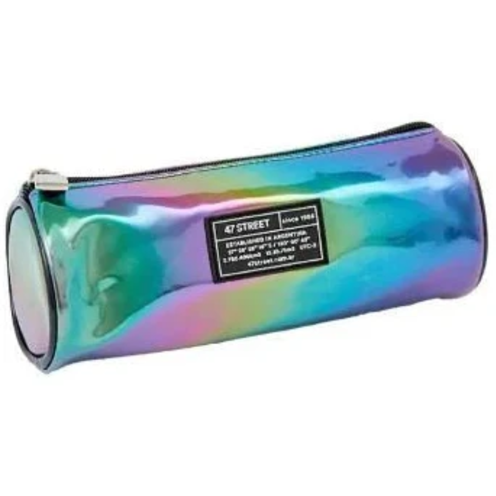 🌟 Estilo y Funcionalidad: ¡Dale un toque único a tu vuelta al cole con esta cartuchera de diseño exclusivo de 47 Street! Su acabado metalizado la hace súper chic y moderna.