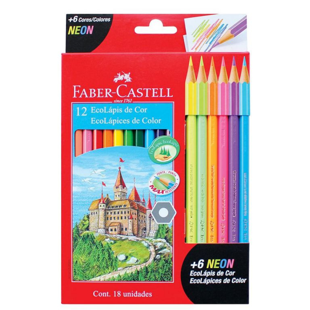 LAPICES DE COLORES FABER-CASTELL X 12 LARGOS + NEON