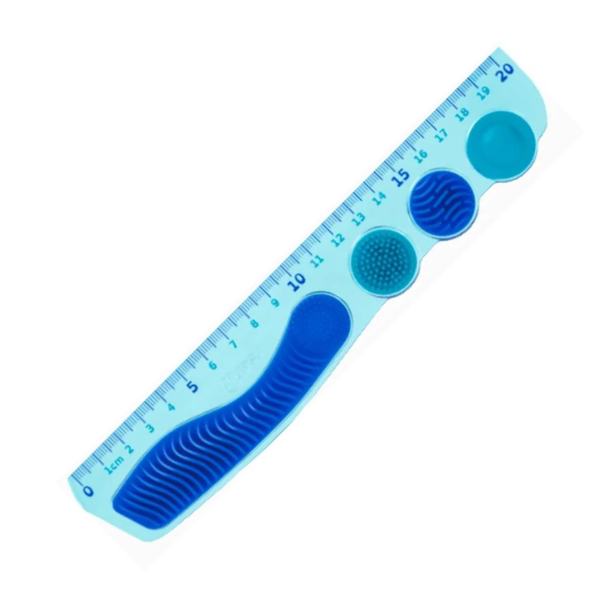 - Regla de concentración (20 cm): cuenta con zonas táctiles removibles que estimulan los sentidos, reducen el estrés y mejoran la estabilidad al trazar líneas.