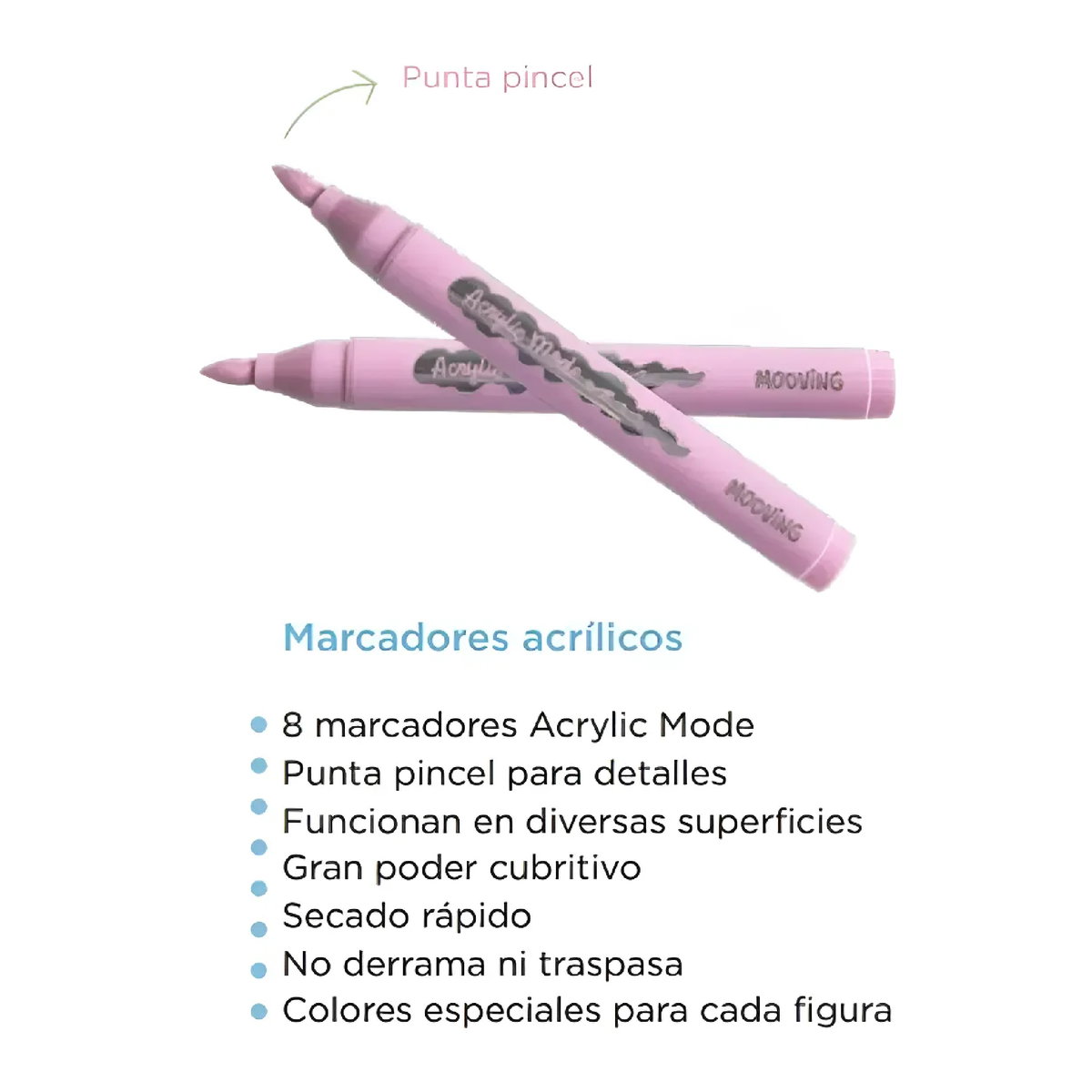 Contiene 8 marcadores acrílicos punta pincel + 1 figura de yeso premium para customizar