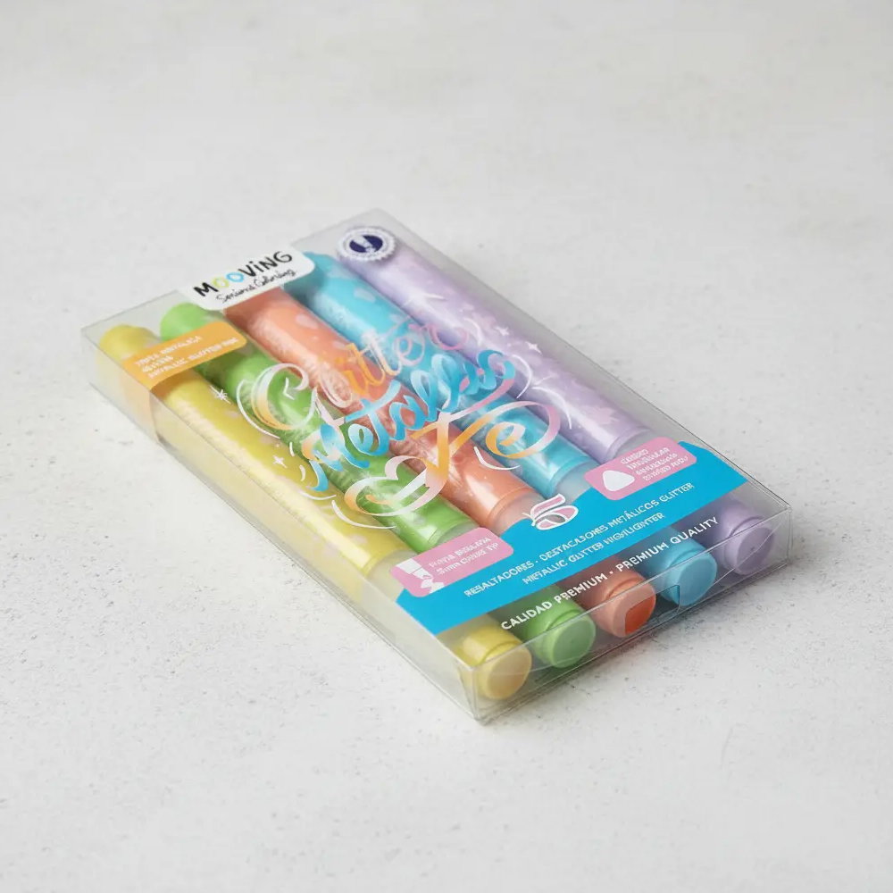 Resaltadores METÁLICOS con GLITTER “Glitter Metallic”x5 de Mooving