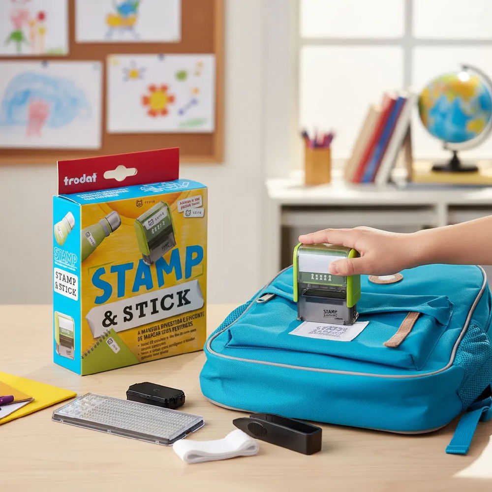 Con el sello Stamp & Stick etiquetá los útiles, ropa, botellas y contenedores térmicos!