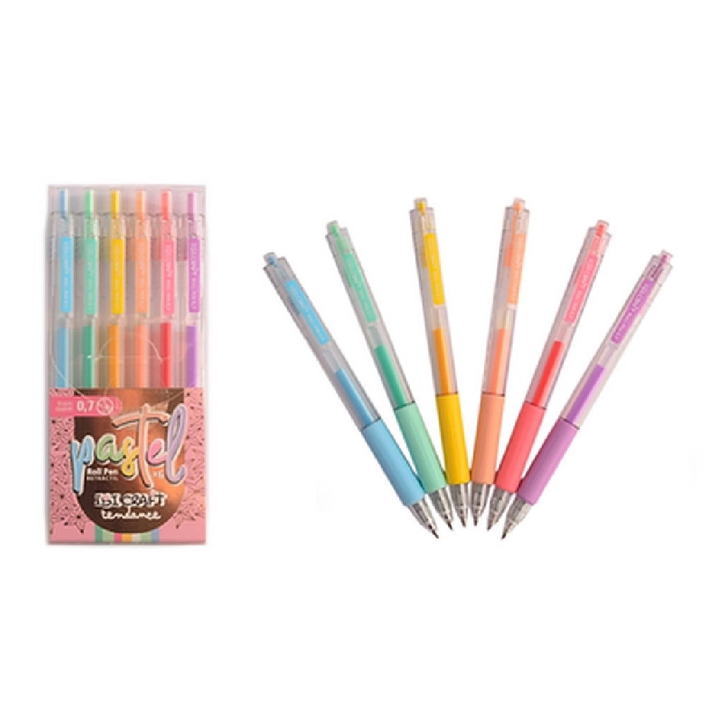 Pack de 6 bolígrafos roll pen retráctil en tonos pastel Ibicraft Tendance