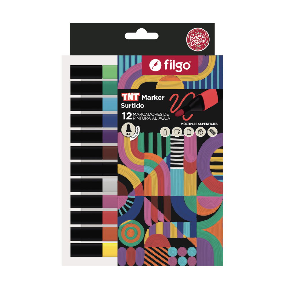 Pack de 12 marcadores SURTIDOS de pintura al agua TNT Filgo.