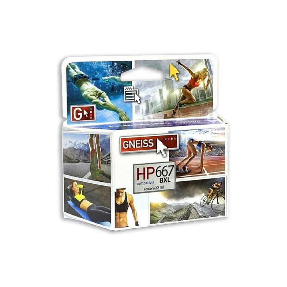 El Cartucho HP Gneiss XL 667 NEGRO Alternativo es la solución perfecta para quienes buscan una impresión de alta calidad a un precio accesible. Diseñado para ser compatible con las impresoras HP modelos DESKJET ADVANTAGE 1275, 2374, 2375, 2376, 2775, 2776, 6076, 6476 y 6476, este cartucho alternativo garantiza una instalación fácil y un rendimiento óptimo en cada impresión. Con una capacidad extra grande de 22 ml, proporciona una mayor cantidad de tinta, lo que se traduce en más páginas impresas y menos recambios, ahorrándote tiempo y dinero.