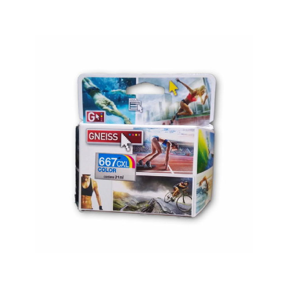 El Cartucho HP Gneiss XL 667 COLOR Alternativo es la solución perfecta para quienes buscan una impresión de alta calidad a un precio accesible. Diseñado para ser compatible con las impresoras HP modelos DESKJET ADVANTAGE 1275, 2374, 2375, 2376, 2775, 2776, 6076, 6476 y 6476, este cartucho alternativo garantiza una instalación fácil y un rendimiento óptimo en cada impresión. Con una capacidad extra grande de 21 ml, proporciona una mayor cantidad de tinta, lo que se traduce en más páginas impresas y menos recambios, ahorrándote tiempo y dinero.